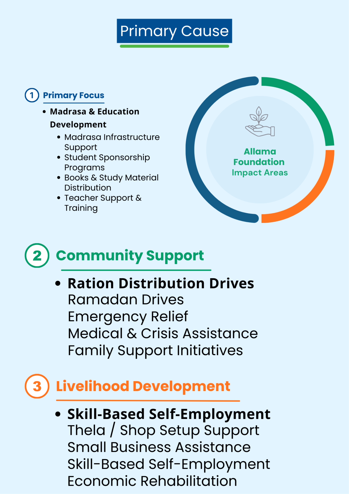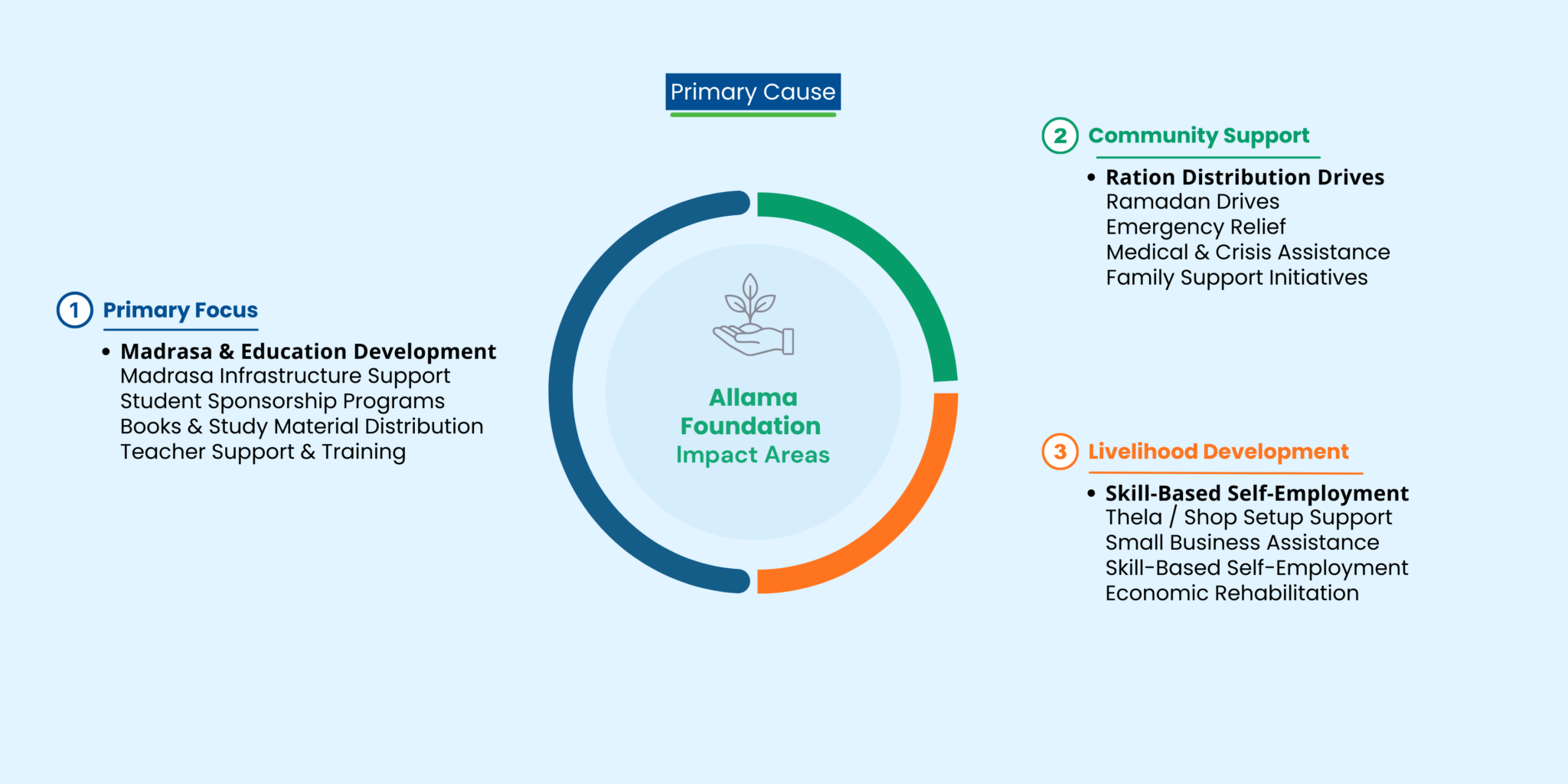 At Allama Foundation, we believe that true empowerment comes from creating opportunities — not dependency.