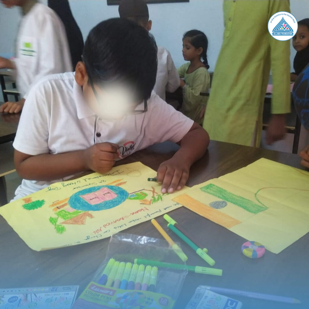 A creative drawing activity organized at Madrasa Nizamiya, where students and local community members enthusiastically participated and showcased their artistic talents.